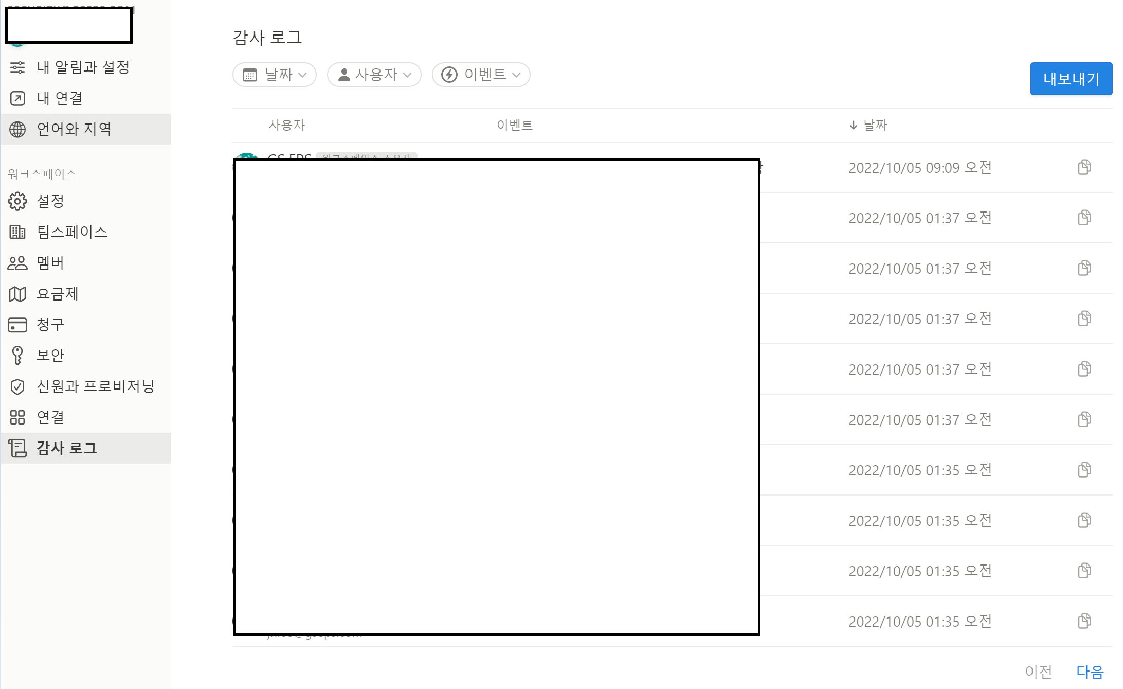 물론 기업 요금제를 사용하고 있기 때문에 감사 로그를 확인할 수 있습니다.