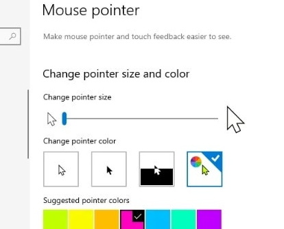 - 윈도우 10의 기존 버전에서는 색상 선택 옵션이 제한적이었으나, 1903 이상에서는 훨씬 다양한 색상과 대형/소형 커서 설정이 가능합니다.