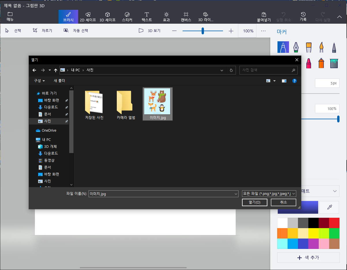 2. '메뉴' - '열기' - '파일 찾아보기' 로 불러올 이미지를 선택해 줍니다.