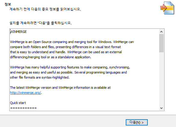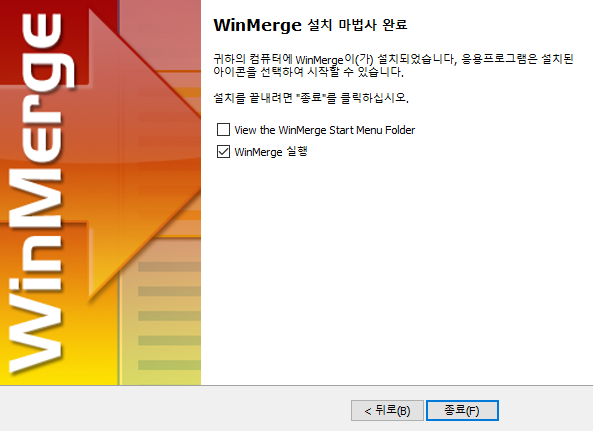 위와 같이 설치가 완료되면 WinMerge가 자동으로 실행됩니다.