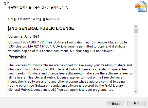 그다음 다운로드한 설치 프로그램을 실행해 주세요. 그리고 아래의 순서에 따라 설치를 진행합니다.