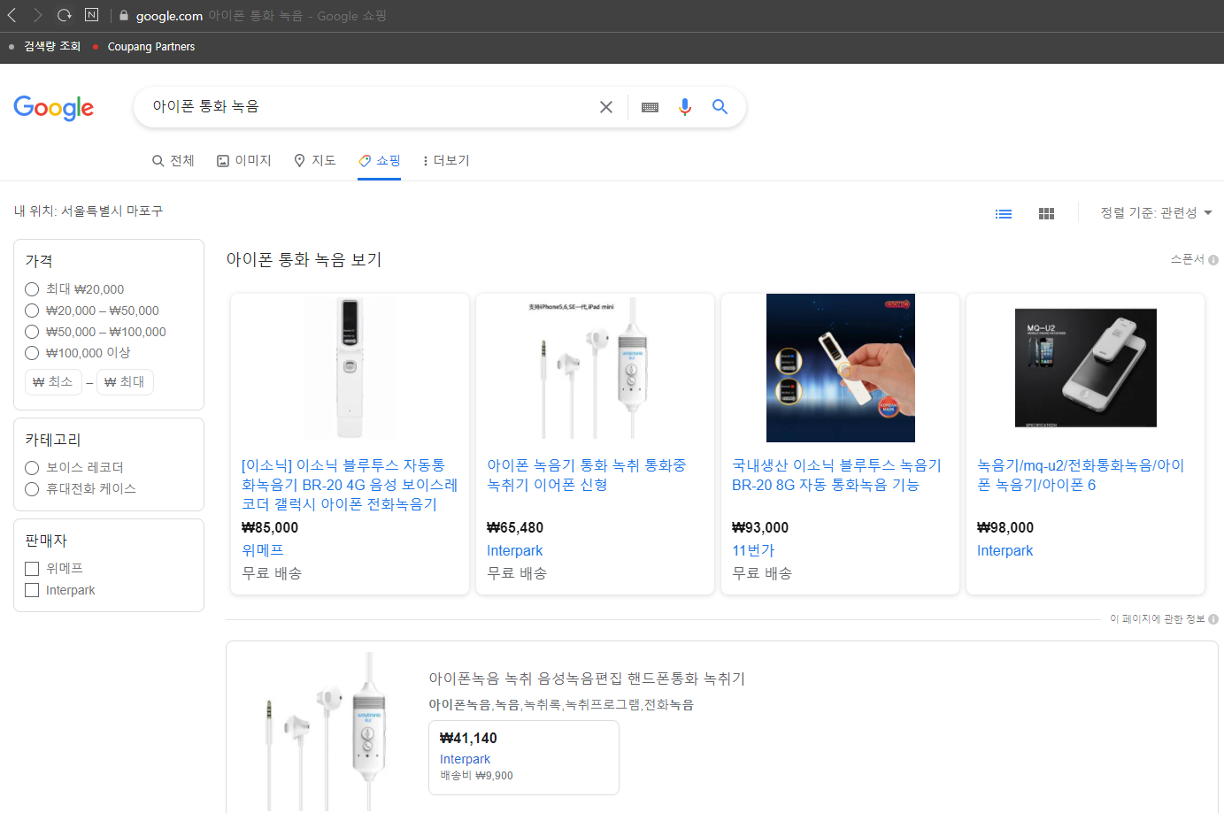 여러 포털사이트에서 아이폰 녹음기라고 검색하시면 아래와 같이 여러 제품들이 검색됩니다.
