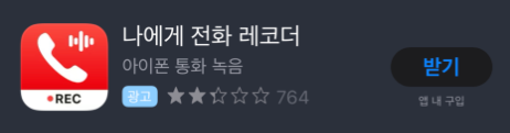 아이폰 앱스토어(App Store)에서 '통화녹음' 이라고 검색하면 아래와 같이 여러 애플리케이션이 표시되는데,