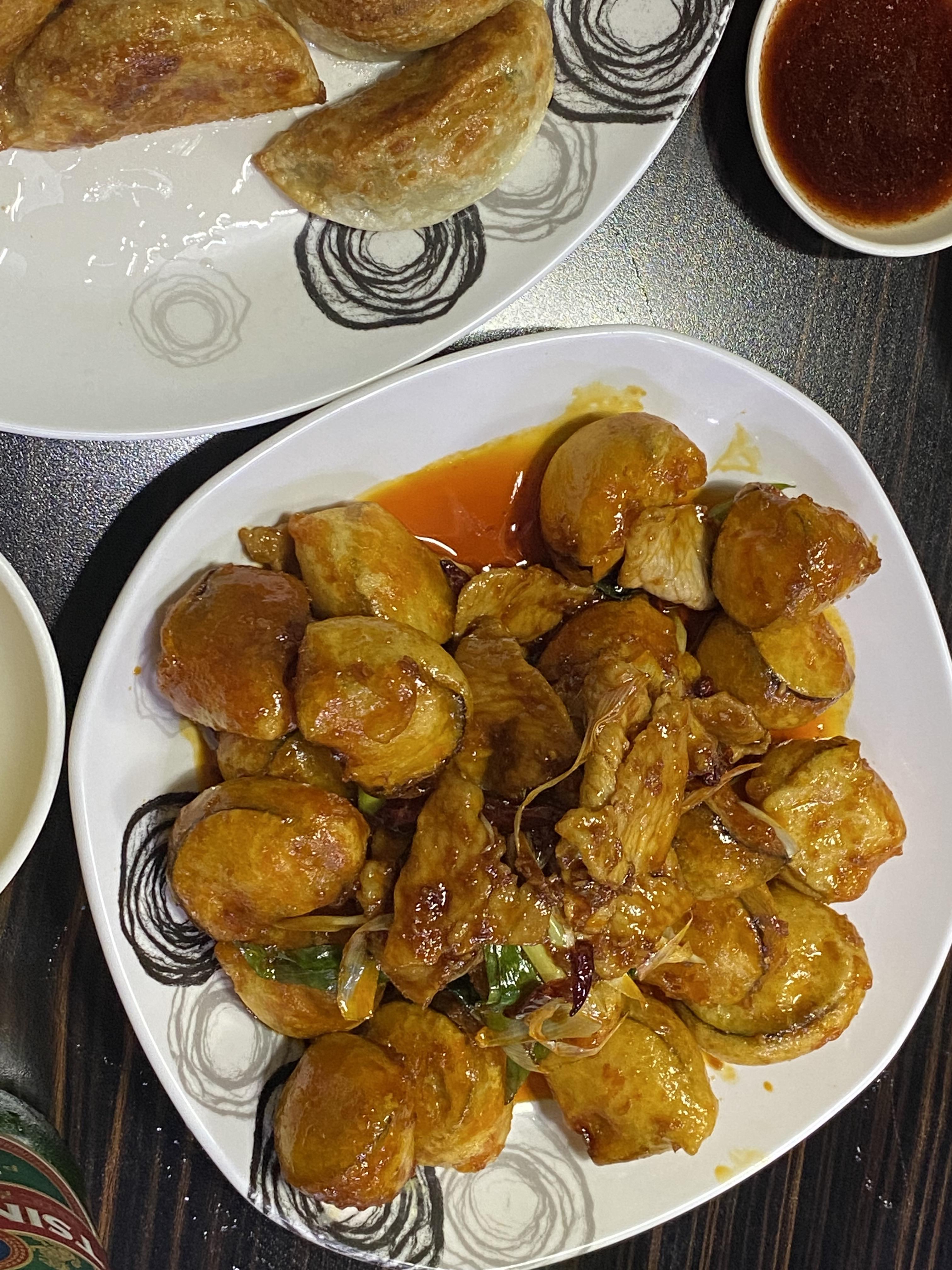 이게 또 상당히 별미였습니다. 가지 튀김 위에 빨간 고추와 돼지고기를 얹어서 함께 먹으니 바삭 쫄깃 물컹한 다양한 식감을 느낄 수 있어서 좋았습니다.