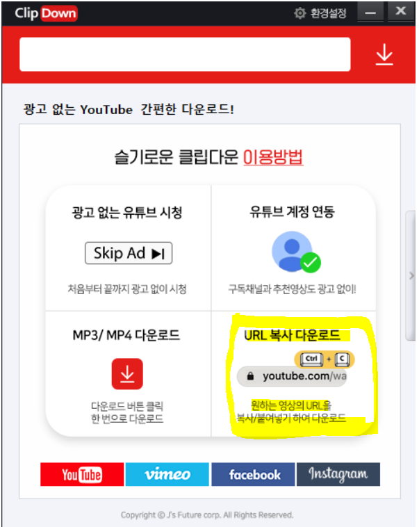 5. 자 이제 복사한 URL을 Clip Down 상단 빈칸에 넣어주세요~