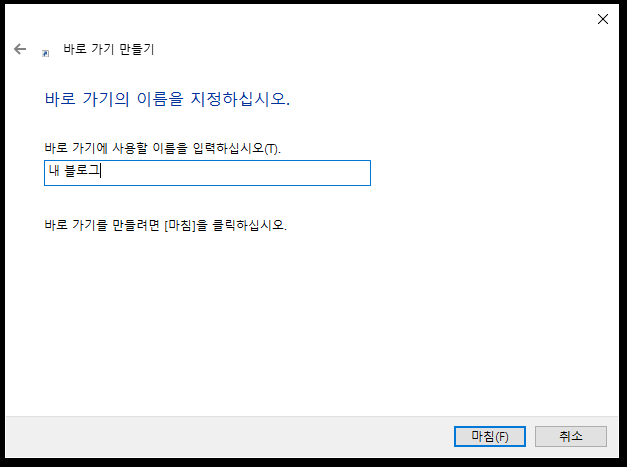 그 뒤에 생성하는 바로가기의 이름을 지정해 주시면 됩니다.