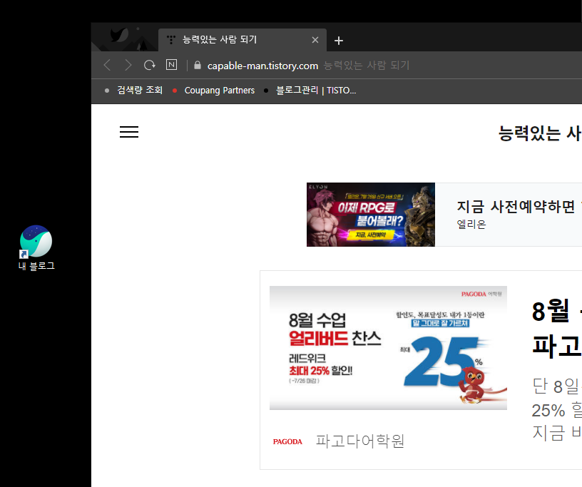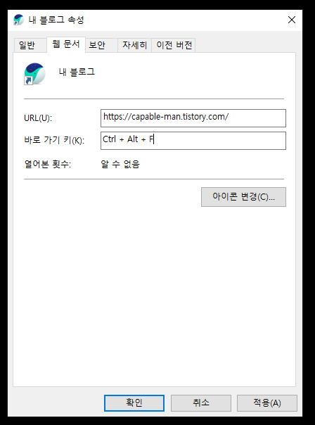 3. 생성된 바로가기를 클릭하면 오른쪽 화면과 같이 본인이 지정한 주소로 인터넷 브라우저가 실행됩니다.