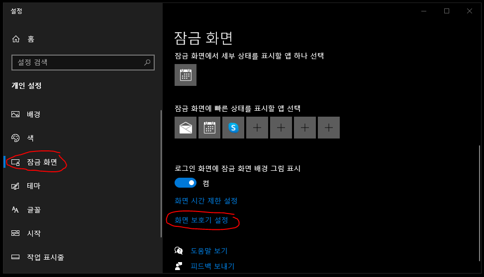 2. '잠금 화면'을 클릭하고 스크롤을 조금 내리면 '화면 보호기 설정'이 있는데요 클릭해 줍니다.