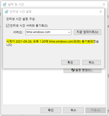 | 컴퓨터 시간 동기화 간격 줄이기! (0) | 2021.09.28 |