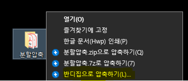 분할압축은 사실 반디집 외에도 알집이나 여러 많은 압축 프로그램이 지원이 가능한 기능이니까