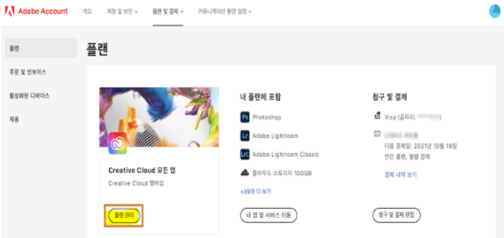 1. https://account.adobe.com/plans 에 로그인을 해줍니다.
