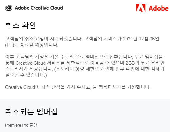 이 메일까지 받으시면 어도비 체험판 또는 구독 결제 취소가 모두 완료된 거예요!