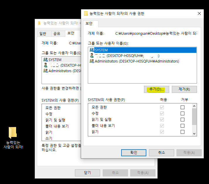 그다음 새로 뜬 창에 '추가'를 클릭합니다.