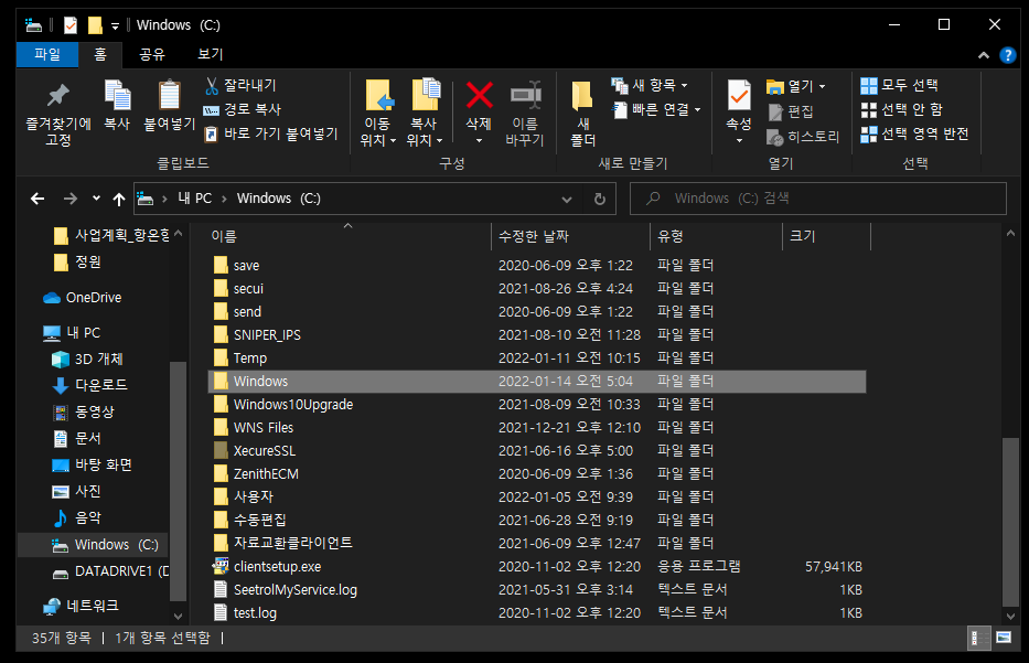 우선 C: 드라이브 밑에 Windows 폴더를 찾아주세요
