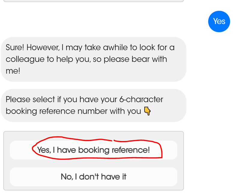 그리고 ' YES'를 클릭합니다. 그리고 'Yes, I have booking reference!'를 클릭합니다.