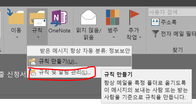 그래서 이번 시간에는 아웃룩의 기능 중 하나인 '규칙' 에 대해서 알려드리겠습니다.